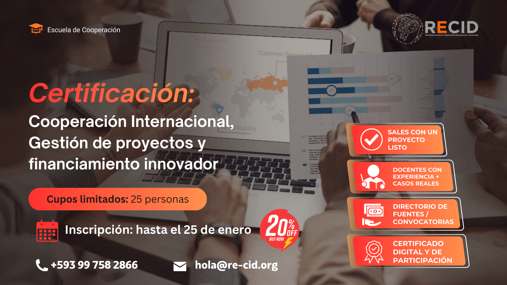 La Red Ecuatoriana de Cooperación Internacional y Desarrollo (RECID) con el apoyo de FLACSO Argentina, Área de Relaciones Internacionales, abre su séptima cohorte de la principal certificación de cooperación de la región: Cooperación Internacional, Gestión de Proyectos y Financiamiento Innovador.